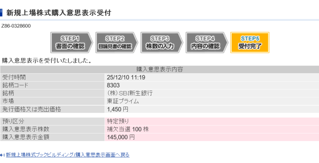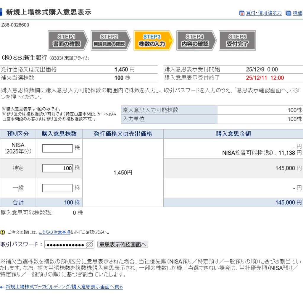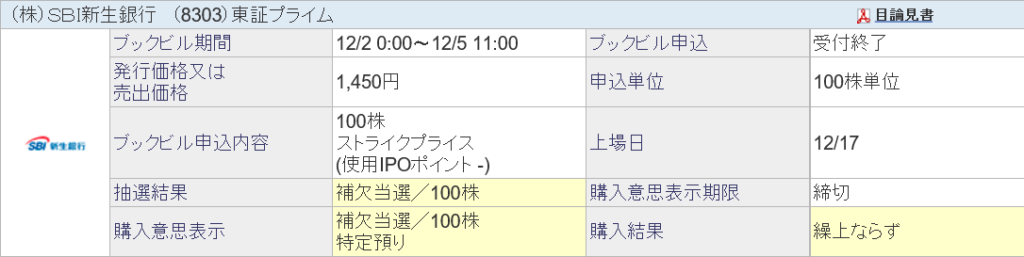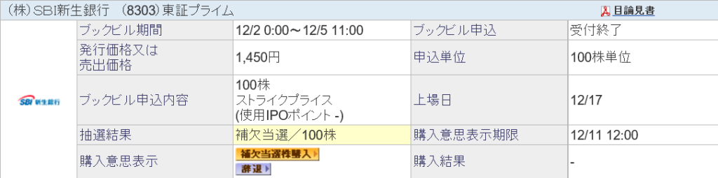 先日のSBI新生銀行のIPO、実は当選していなかった件 [17日]