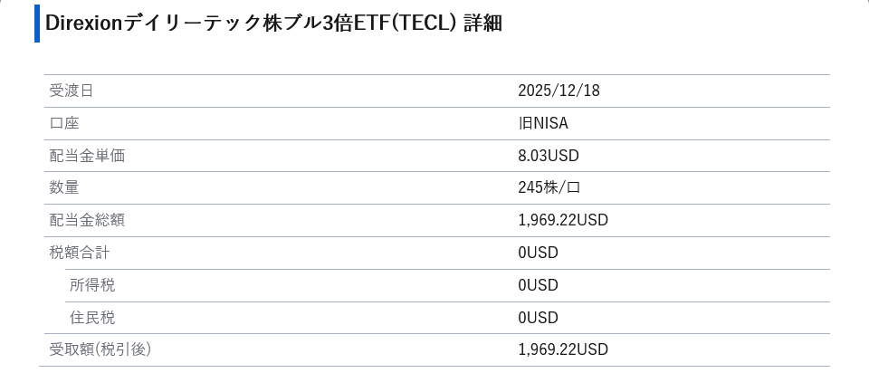 日本円にして30万円以上の配当金を頂きました。NISA口座で保有しているので国内の税金はかかっていません。